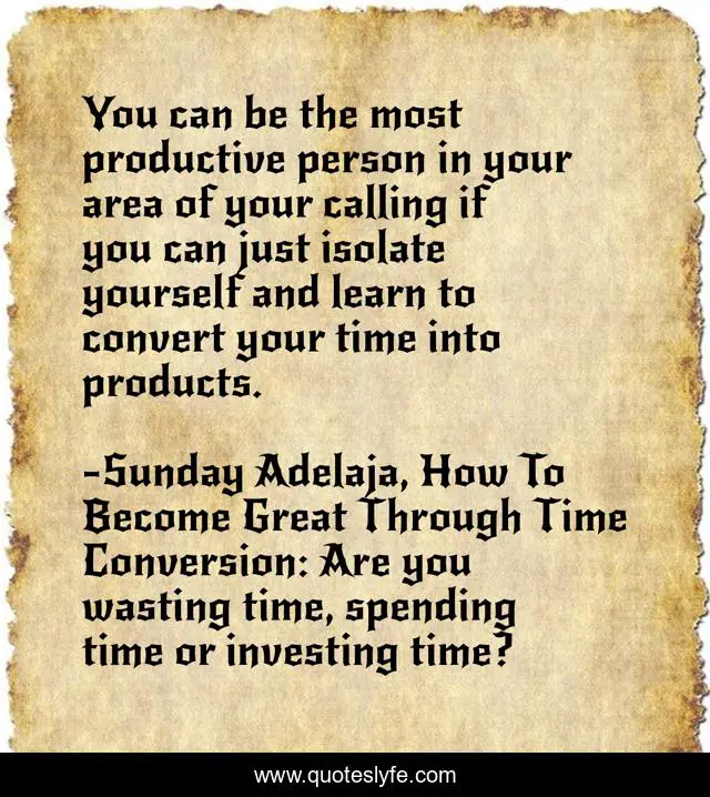 "Sunday Adelaja, How To Become Great Through Time Conversion: Are you wasting time, spending time or investing time? Quotes." Quoteslyfe.com, 2025. Sat. 06 Dec. 2025. <https://www.quoteslyfe.com/quote/You-can-be-the-most-productive-person-38967>.
