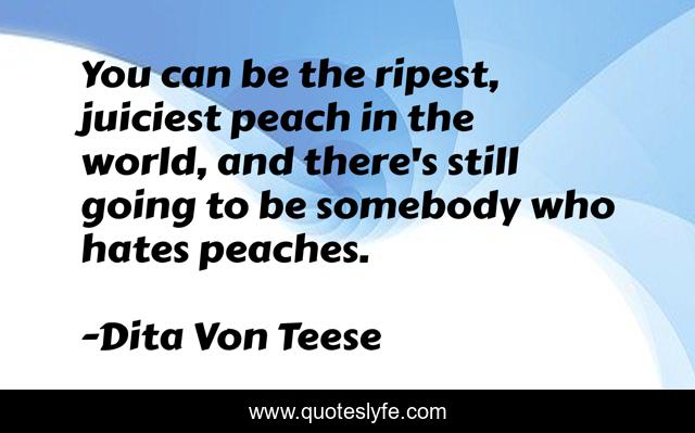 This page presents the quote "You can be the ripest, juiciest peach in the world, and there's still going to be somebody who hates peaches.". Author of this quote is Dita Von Teese. This quote is about world, dita-von-teese, peach,.