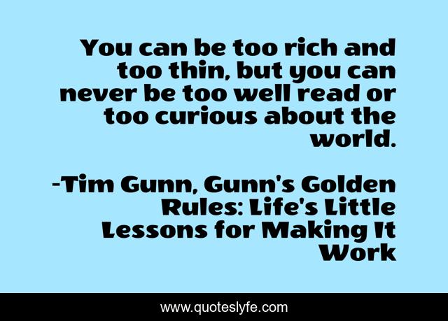 This page presents the quote "You can be too rich and too thin, but you can never be too well read or too curious about the world.". Author of this quote is Tim Gunn, Gunn's Golden Rules: Life's Little Lessons for Making It Work. .