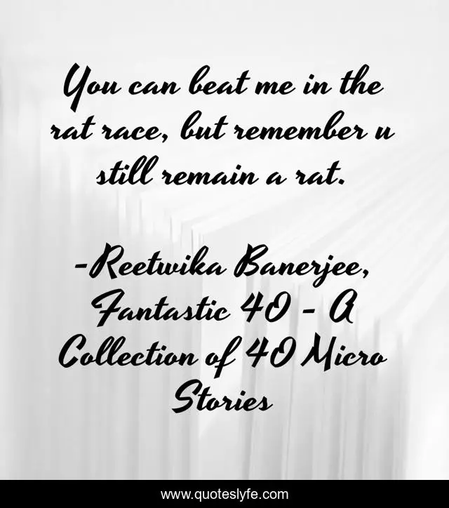 "Reetwika Banerjee, Fantastic 40 - A Collection of 40 Micro Stories Quotes." Quoteslyfe.com, 2025. Sun. 07 Dec. 2025. <https://www.quoteslyfe.com/quote/You-can-beat-me-in-the-rat-224924>.