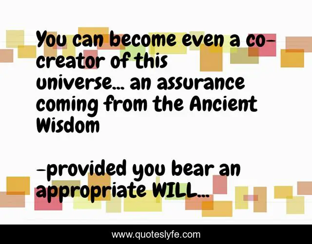 You can become even a co-creator of this universe... an assurance coming from the Ancient Wisdom