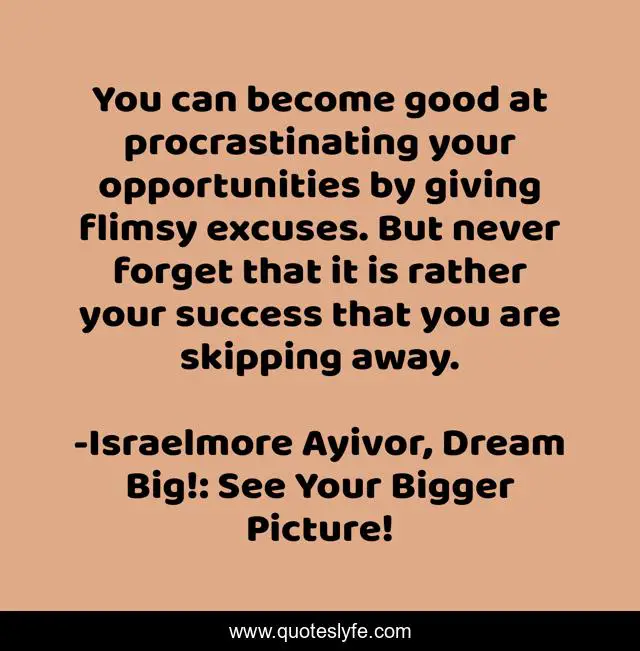 "Israelmore Ayivor, Dream Big!: See Your Bigger Picture! Quotes." Quoteslyfe.com, 2025. Mon. 08 Dec. 2025. <https://www.quoteslyfe.com/quote/You-can-become-good-at-procrastinating-your-129482>.
