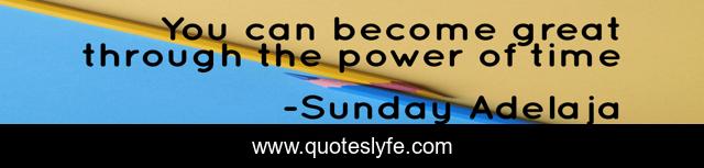 This page presents the quote "You can become great through the power of time". Author of this quote is Sunday Adelaja. This quote is about great, work, finance, power, money, blessing, powerful, life, job,.
