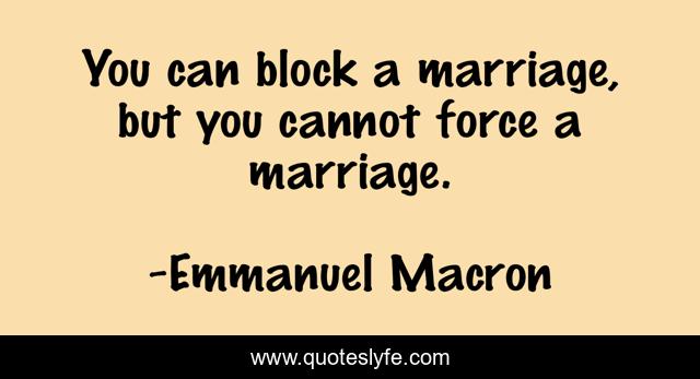 This page presents the quote "You can block a marriage, but you cannot force a marriage.". Author of this quote is Emmanuel Macron. This quote is about cannot, force,.
