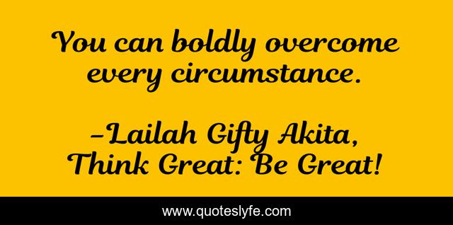 "Lailah Gifty Akita, Think Great: Be Great! Quotes." Quoteslyfe.com, 2025. Sat. 06 Dec. 2025. <https://www.quoteslyfe.com/quote/You-can-boldly-overcome-every-circumstance-78397>.