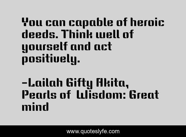 "Lailah Gifty Akita, Pearls of Wisdom: Great mind Quotes." Quoteslyfe.com, 2025. Fri. 05 Dec. 2025. <https://www.quoteslyfe.com/quote/You-can-capable-of-heroic-deeds-Think-98721>.