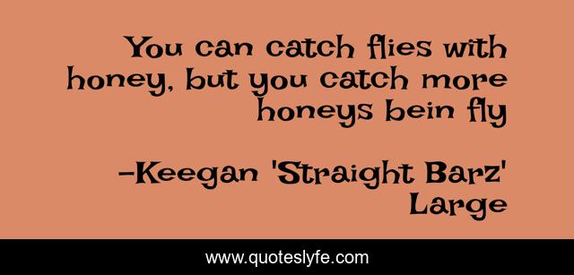 This page presents the quote "You can catch flies with honey, but you catch more honeys bein fly". Author of this quote is Keegan 'Straight Barz' Large. This quote is about beautiful, god, sophisticated, elegant, attractive, inspirational, enthusiasm,.