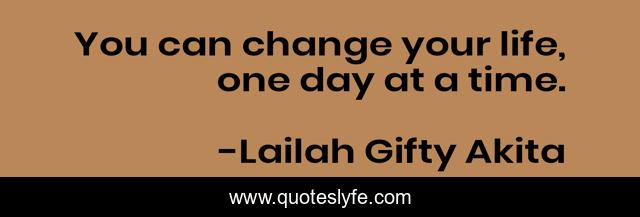 This page presents the quote "You can change your life, one day at a time.". Author of this quote is Lailah Gifty Akita. This quote is about life, moments, daily-inspiration, self-help, wisdom, dont-give-up, time, change,.