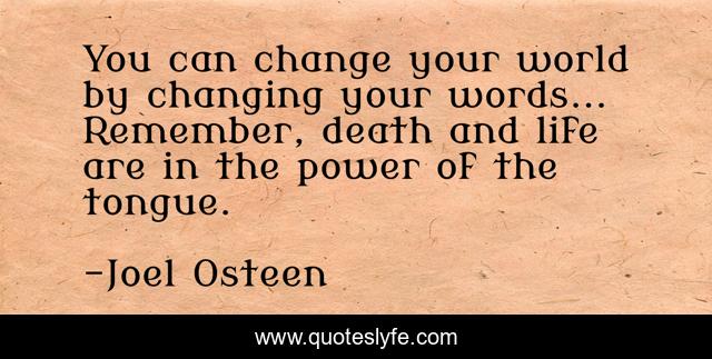 This page presents the quote "You can change your world by changing your words... Remember, death and life are in the power of the tongue.". Author of this quote is Joel Osteen. This quote is about life, death, change,.