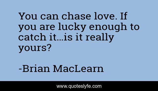 This page presents the quote "You can chase love. If you are lucky enough to catch it…is it really yours?". Author of this quote is Brian MacLearn. This quote is about heartache, life-philosophy, love, affection,.
