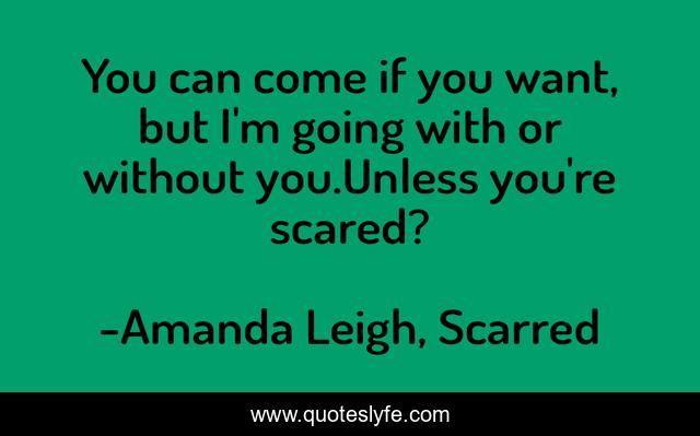 This page presents the quote "You can come if you want, but I'm going with or without you.Unless you're scared?". Author of this quote is Amanda Leigh, Scarred. This quote is about vampires, ya, na, pnr, vampires-paranormal-romance, witches,.