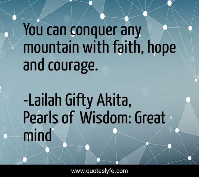 "Lailah Gifty Akita, Pearls of Wisdom: Great mind Quotes." Quoteslyfe.com, 2025. Mon. 08 Dec. 2025. <https://www.quoteslyfe.com/quote/You-can-conquer-any-mountain-with-faith-91809>.