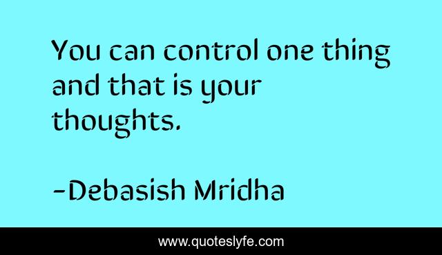 This page presents the quote "You can control one thing and that is your thoughts.". Author of this quote is Debasish Mridha. This quote is about debasish, mridha, control-one-thing, philosophy, debasish-mridha, control-your-thoughts,.