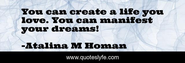 This page presents the quote "You can create a life you love. You can manifest your dreams!". Author of this quote is Atalina M Homan. This quote is about enthusiasm, spiritual, love, inspirational, affection,.