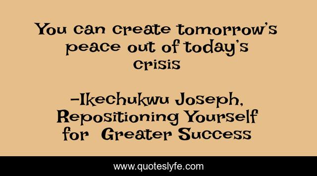 This page presents the quote "You can create tomorrow’s peace out of today’s crisis". Author of this quote is Ikechukwu Joseph, Repositioning Yourself for Greater Success. This quote is about christian-living, success, ebooks,.