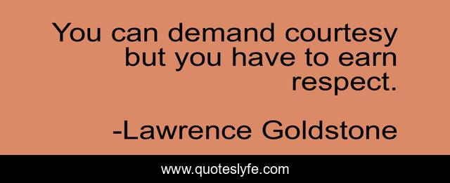 This page presents the quote "You can demand courtesy but you have to earn respect.". Author of this quote is Lawrence Goldstone. This quote is about respect, courtesy,.