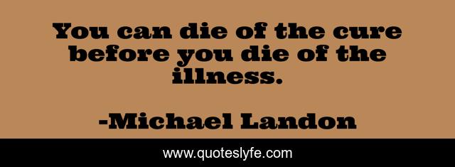 This page presents the quote "You can die of the cure before you die of the illness.". Author of this quote is Michael Landon. This quote is about die, illness,.
