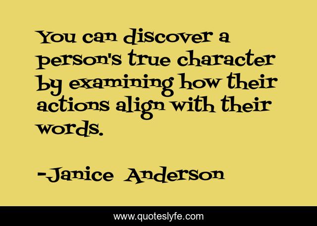 This page presents the quote "You can discover a person's true character by examining how their actions align with their words.". Author of this quote is Janice Anderson. This quote is about enlightened-actions, enlightenment, character, peace, offbeat-enlightenment,.