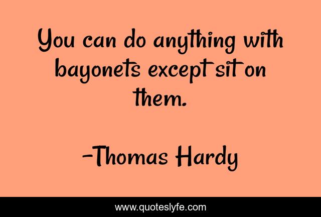 This page presents the quote "You can do anything with bayonets except sit on them.". Author of this quote is Thomas Hardy. This quote is about anything, sit,.