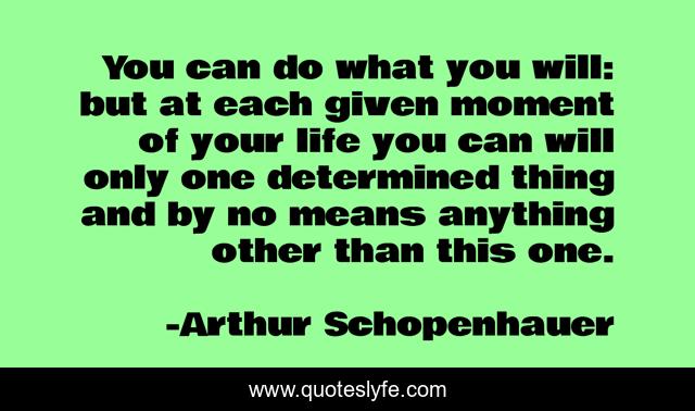 This page presents the quote "You can do what you will: but at each given moment of your life you can will only one determined thing and by no means anything other than this one.". Author of this quote is Arthur Schopenhauer. .