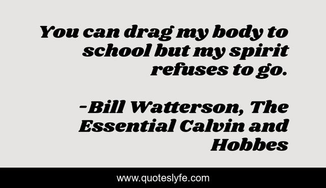 This page presents the quote "You can drag my body to school but my spirit refuses to go.". Author of this quote is Bill Watterson, The Essential Calvin and Hobbes. This quote is about school, humor,.