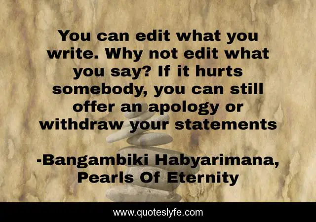 "Bangambiki Habyarimana, Pearls Of Eternity Quotes." Quoteslyfe.com, 2025. Fri. 05 Dec. 2025. <https://www.quoteslyfe.com/quote/You-can-edit-what-you-write-Why-108079>.
