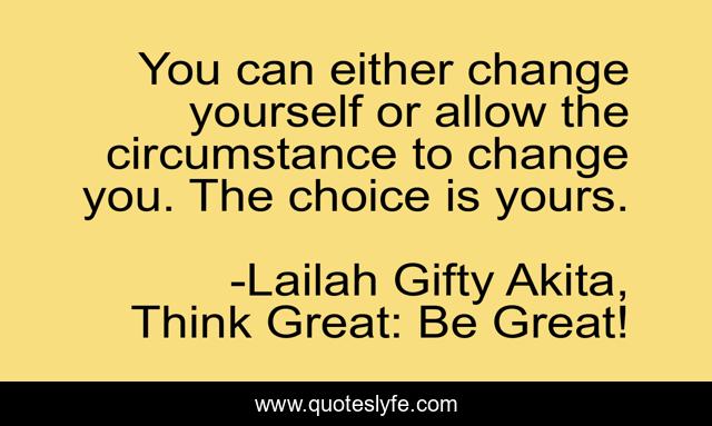 "Lailah Gifty Akita, Think Great: Be Great! Quotes." Quoteslyfe.com, 2025. Fri. 05 Dec. 2025. <https://www.quoteslyfe.com/quote/You-can-either-change-yourself-or-allow-95016>.