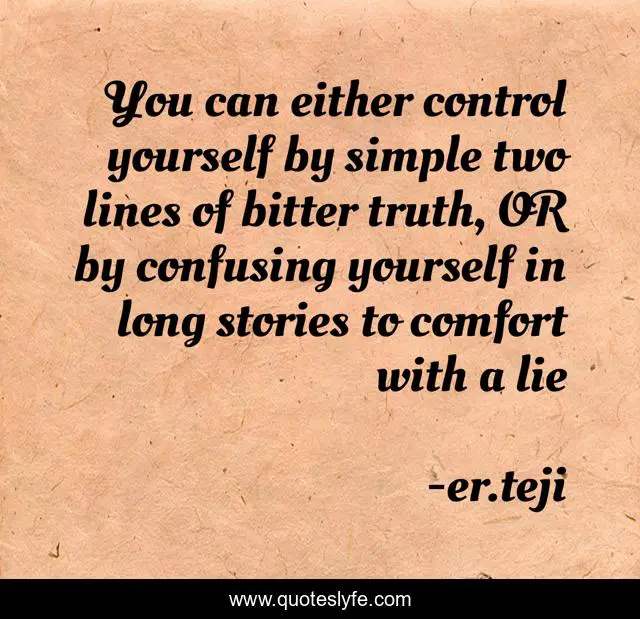 This page presents the quote "You can either control yourself by simple two lines of bitter truth, OR by confusing yourself in long stories to comfort with a lie". Author of this quote is er.teji. This quote is about rationalism, atheist,.
