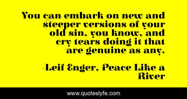 This page presents the quote "You can embark on new and steeper versions of your old sin, you know, and cry tears doing it that are genuine as any.". Author of this quote is Leif Enger, Peace Like a River. This quote is about tears, remorse, sin,.