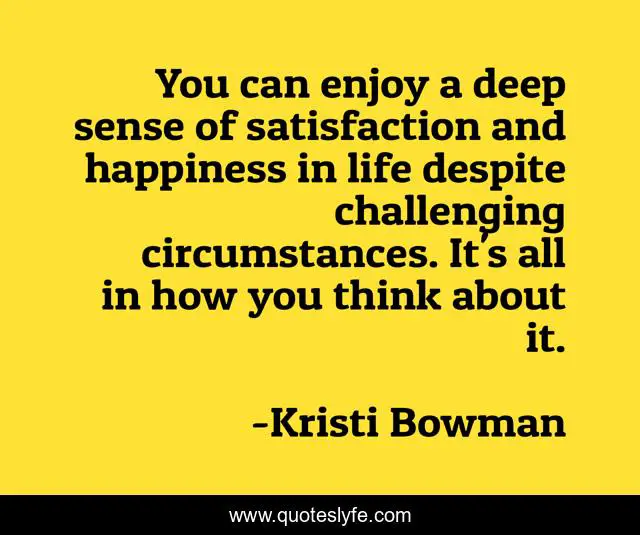 This page presents the quote "You can enjoy a deep sense of satisfaction and happiness in life despite challenging circumstances. It's all in how you think about it.". Author of this quote is Kristi Bowman. This quote is about enthusiasm, happiness, inspirational, perspective,.