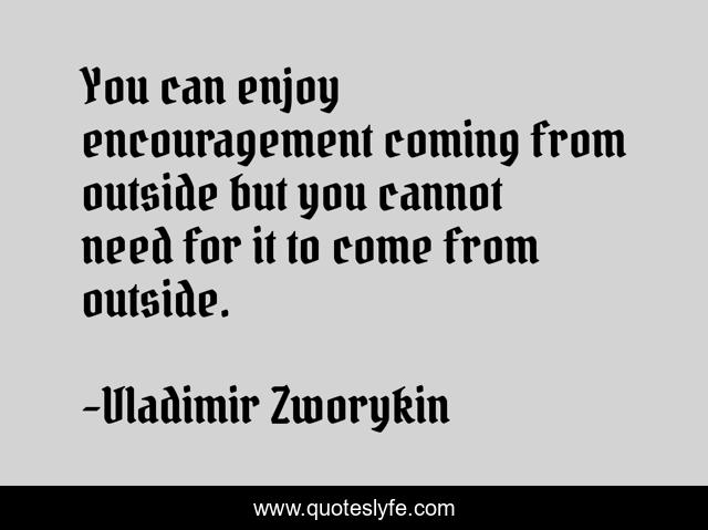 This page presents the quote "You can enjoy encouragement coming from outside but you cannot need for it to come from outside.". Author of this quote is Vladimir Zworykin. This quote is about self, acceptance,.