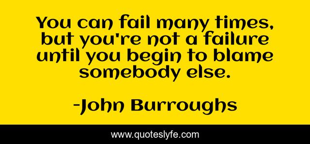 This page presents the quote "You can fail many times, but you're not a failure until you begin to blame somebody else.". Author of this quote is John Burroughs. This quote is about blame, failure,.