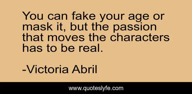 This page presents the quote "You can fake your age or mask it, but the passion that moves the characters has to be real.". Author of this quote is Victoria Abril. This quote is about passion, fake,.