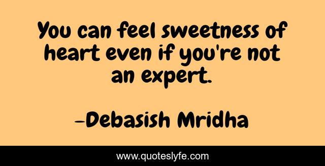 This page presents the quote "You can feel sweetness of heart even if you're not an expert.". Author of this quote is Debasish Mridha. This quote is about feeling-joy, sweetness-of-heart, philosophy, debasish-mridha, quotes, inspirational, enthusiasm, feeling-sweetness, debasish-mridha-m-d,.
