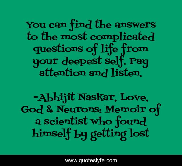 "Abhijit Naskar, Love, God & Neurons: Memoir of a scientist who found himself by getting lost Quotes." Quoteslyfe.com, 2025. Fri. 05 Dec. 2025. <https://www.quoteslyfe.com/quote/You-can-find-the-answers-to-the-33233>.