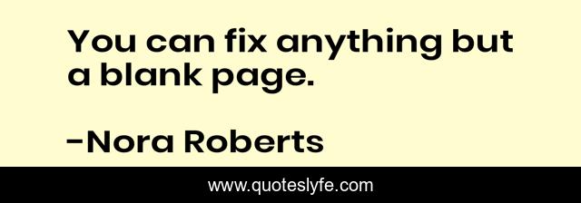 This page presents the quote "You can fix anything but a blank page.". Author of this quote is Nora Roberts. This quote is about on-writing, storytelling, writing,.