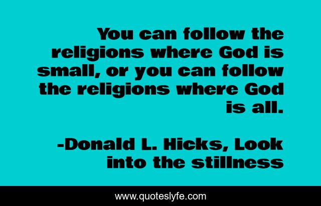 This page presents the quote "You can follow the religions where God is small, or you can follow the religions where God is all.". Author of this quote is Donald L. Hicks, Look into the stillness. This quote is about religion, oneness,.