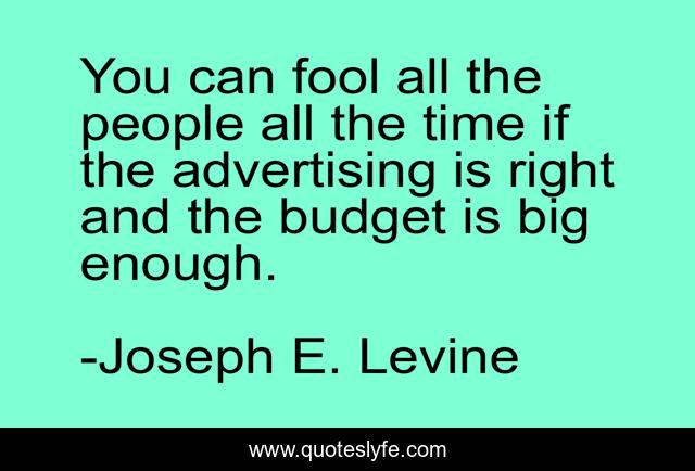 This page presents the quote "You can fool all the people all the time if the advertising is right and the budget is big enough.". Author of this quote is Joseph E. Levine. This quote is about marketing, deception,.