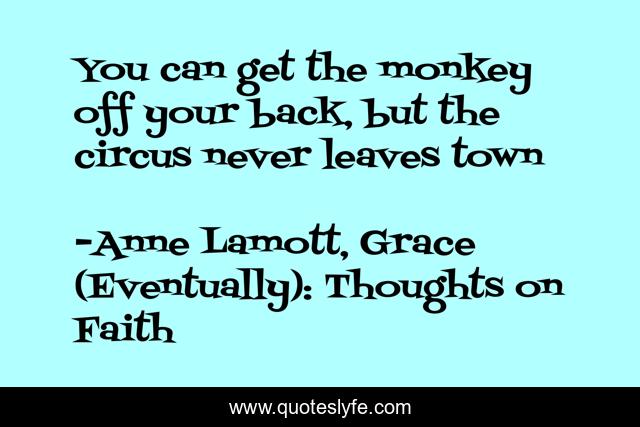 "Anne Lamott, Grace (Eventually): Thoughts on Faith Quotes." Quoteslyfe.com, 2025. Sat. 06 Dec. 2025. <https://www.quoteslyfe.com/quote/You-can-get-the-monkey-off-your-237808>.