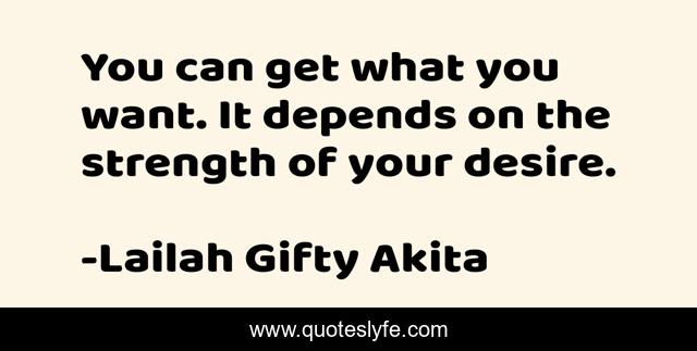 This page presents the quote "You can get what you want. It depends on the strength of your desire.". Author of this quote is Lailah Gifty Akita. This quote is about dreams-strength, ambitions, determination, desires, self-help,.