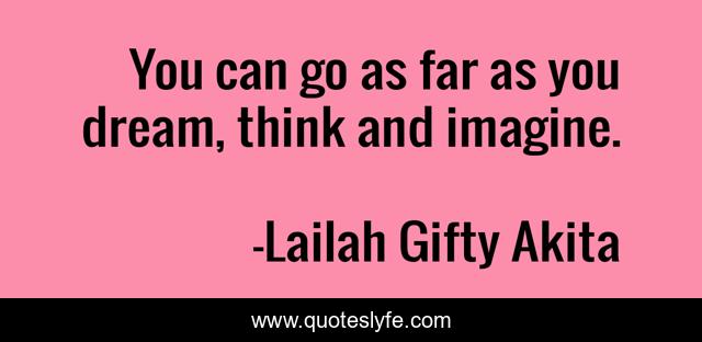 This page presents the quote "You can go as far as you dream, think and imagine.". Author of this quote is Lailah Gifty Akita. This quote is about possibilities, dreams-come-true, dreams-inspirational, dream-big, dreams-coming-true,.
