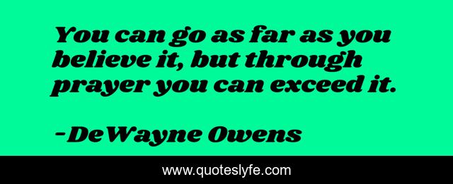 This page presents the quote "You can go as far as you believe it, but through prayer you can exceed it.". Author of this quote is DeWayne Owens. This quote is about faith, confidence, belief, motivational-inspirational, motivational, wisdom, prayer, optimistic, inspirational,.