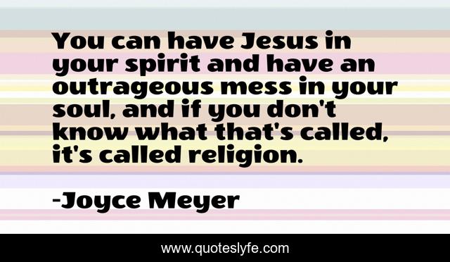 This page presents the quote "You can have Jesus in your spirit and have an outrageous mess in your soul, and if you don't know what that's called, it's called religion.". Author of this quote is Joyce Meyer. .