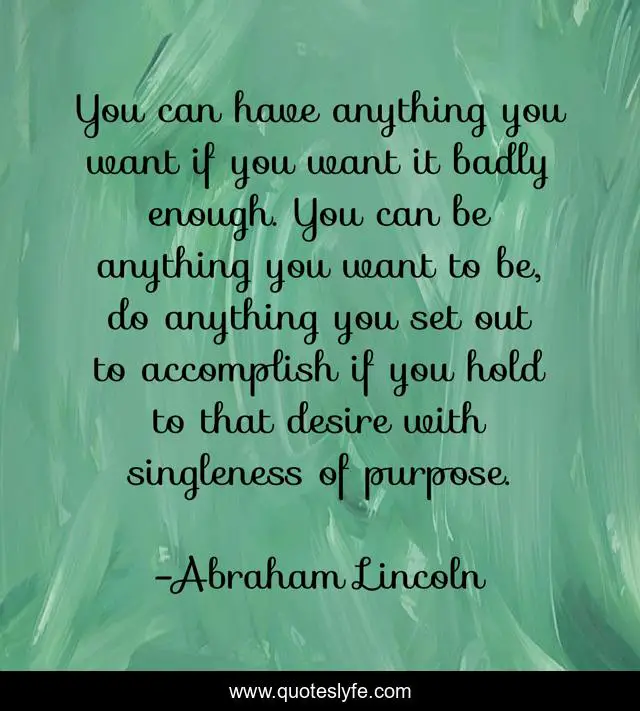 This page presents the quote "You can have anything you want if you want it badly enough. You can be anything you want to be, do anything you set out to accomplish if you hold to that desire with singleness of purpose.". Author of this quote is Abraham Lincoln. This quote is about desire, accomplish, determination, purpose,.