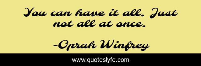 This page presents the quote "You can have it all. Just not all at once.". Author of this quote is Oprah Winfrey. This quote is about life, dreams, time,.