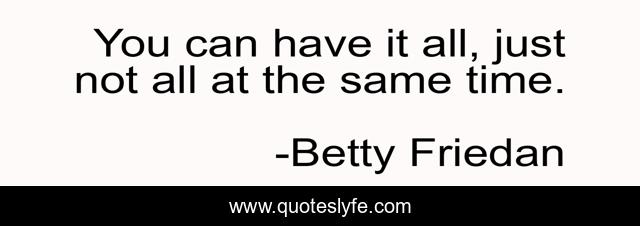 This page presents the quote "You can have it all, just not all at the same time.". Author of this quote is Betty Friedan. This quote is about life, success, making-it, betty-friedan, opportunity, feminism, women,.