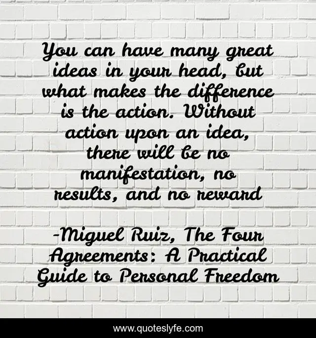 "Miguel Ruiz, The Four Agreements: A Practical Guide to Personal Freedom Quotes." Quoteslyfe.com, 2025. Fri. 05 Dec. 2025. <https://www.quoteslyfe.com/quote/You-can-have-many-great-ideas-in-4392>.