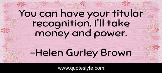 This page presents the quote "You can have your titular recognition. I'll take money and power.". Author of this quote is Helen Gurley Brown. .