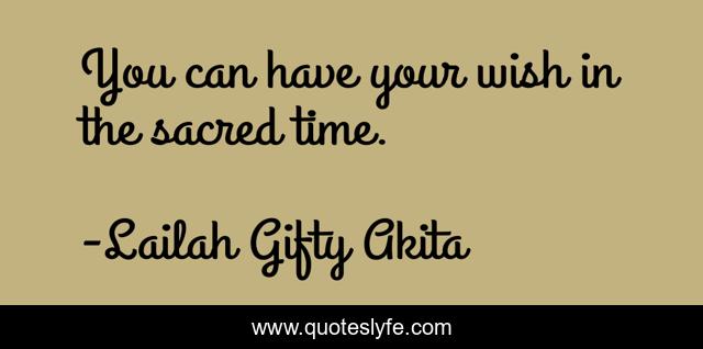This page presents the quote "You can have your wish in the sacred time.". Author of this quote is Lailah Gifty Akita. This quote is about positive-attitude, wishes, encouragement, time,.