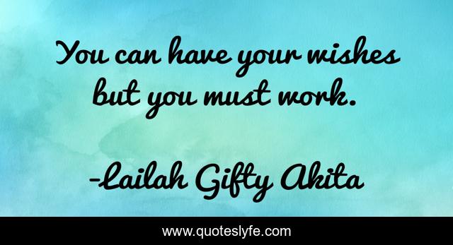 This page presents the quote "You can have your wishes but you must work.". Author of this quote is Lailah Gifty Akita. This quote is about enthusiasm, wishes, work, inspirational,.